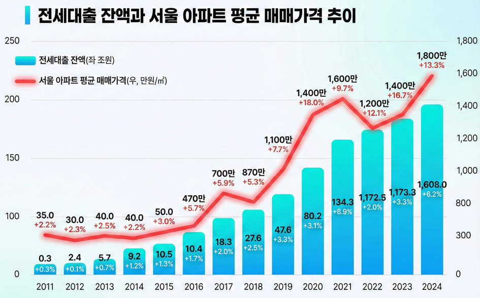 부동산 업계 전문가들은 현재의 시장 불안이 단순한 물량 부족이 아닌, 금융 구조의 왜곡에서 기인한다고 진단한다. 특히 저소득층의 주거 안정을 위해 도입된 전세대출이 투기 수요를 뒷받침하는 지렛대 역할을 하고 있다는 점이 핵심이다.
