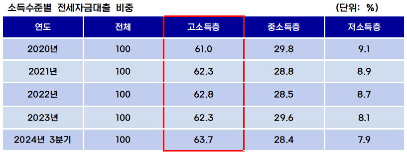 고소득층 갭투자 수단으로 변질된 전세대출 구조⸱⸱⸱상위 30%가 대출 잔액의 63.7% 차지