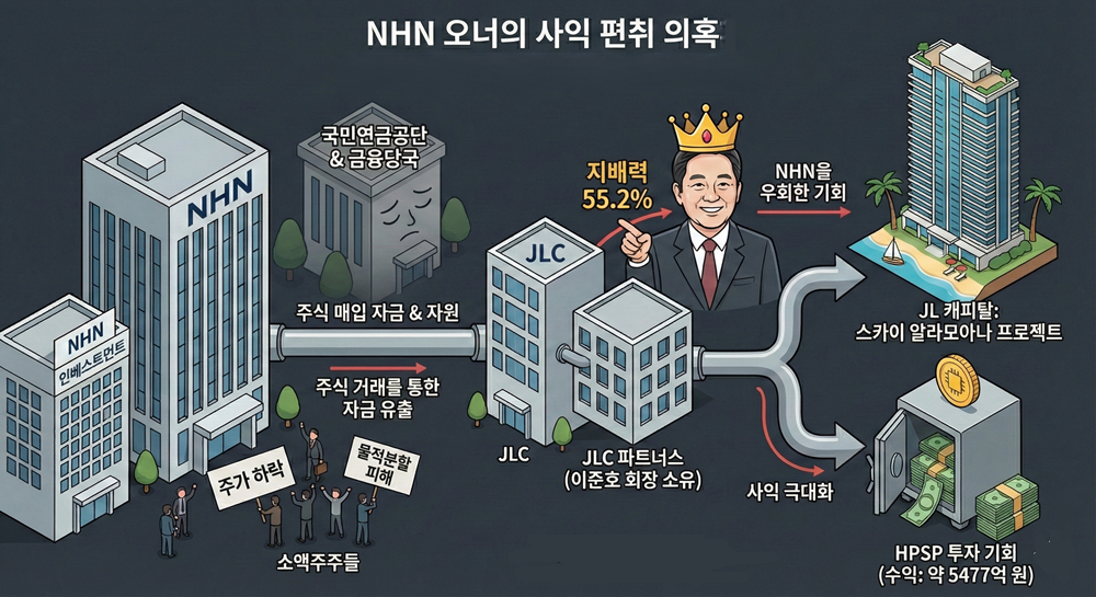 [예결신문=백도현 기자] IT 기업 NHN의 창업주 이준호 회장이 보유한 개인 법인들이 하와이 부동산 개발 및 고수익 투자 사업에 전면 배치되면서 기업 지배구조를 둘러싼 논란이 확산하고 있다. NHN의 자금과 사업 기회가 대주주 개인의 수익 구조로 바뀌었다는 것이 의혹이 핵심이다.